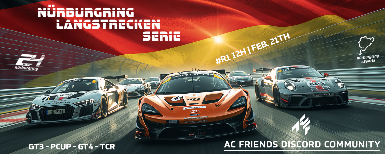 La saison NLS Nordschleife démarre en fanfare avec la collaboration AC-Friends x Nürburgring eSports. Cette course multi-classes de 12 heures sur la Nordschleife promet des sensations fortes à tous les pilotes. Jeunes et moins jeunes, la Nordschleife est un nom familier pour tous les passionnés de sport automobile, et chacun a une anecdote à raconter sur ce circuit mythique. De la GT3 au TCR, chaque pilote repoussera les limites de sa voiture pour décrocher le meilleur résultat possible. Brünnchen et Schwedenkreuz : pour tous les fans, le nom de ces virages est une véritable musique à leurs oreilles. Cette course de 12 heures, avec jusqu'à trois pilotes par classe, promet une lutte acharnée pour la victoire de classe et la victoire au classement général.